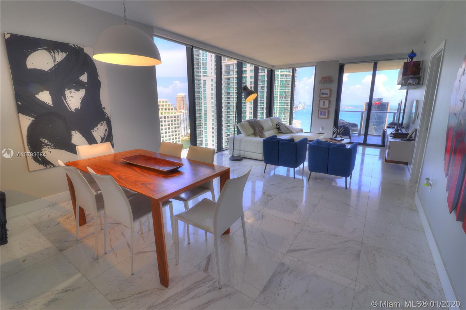 Incredible corner unit at 1010 Brickell Condo, best line in the building overlooking the bay. Private elevator with 3 beds, 3 baths, + den 9-foot ceiling heights, balcony with barbecue/ summer kitchen. Marble floors , Top of the line Smeg appliances! 2 Parking Space included and storage unit. Great amenities for families; outdoor movie theatre, restaurant & swimming pool at 50th floor roof top; spa with jacuzzi, message & treatments rooms, sauna & steam room; basketball, mini soccer & racquetball courts, kids indoor playground, indoor heated swimming pool, fitness center, party room, arcade room with bowling virtual golf, and more!.