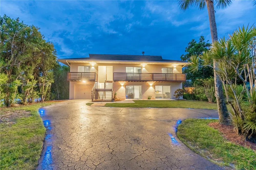 2 HOMES IN 1 set up with separate entrances. This is a perfect 2 family home or income producing property. Each floor has a separate kitchen, bathrooms, and washer/dryer. The upstairs boasts a 3/2 layout with a large flex room and ground floor is a 2 bed 2 bath with a screened porch., cathedral ceilings, skylight, and sliders that flood the home with natural light. Updated kitchen with modern appliances, new cabinets, breakfast bar, and service window to the back deck with an electric awning. All bedrooms have deck access. The downstairs adds 895 sq. ft. of living space with a separate kitchen, bath, and laundry—ideal for rental or guests. Just 10 minutes from Collier Blvd! Don't miss this opportunity!