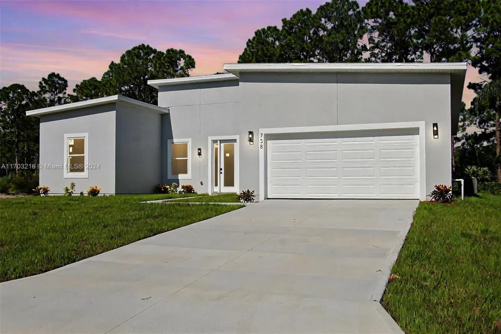 Step into this beautiful home with 10-ft ceilings, offering 4 spacious bedrooms and 3 full bathrooms. The open floor plan features a great room perfect for relaxation and gatherings. The beautifully designed kitchen boasts quartz countertops, an island, and stainless steel appliances. The master suite offers a large walk-in closet and a master bathroom with white quartz double sinks and a wall-to-ceiling tiled shower, combining style and luxury. Enjoy peace of mind with impact windows, ensuring safety and tranquility.